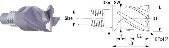 Produktbezeichnung (Variante) D1 D2 D3 L1 L2 L3 Z size Eckfase SWxSB Schaft L4 Materialeignung ART.-NR: