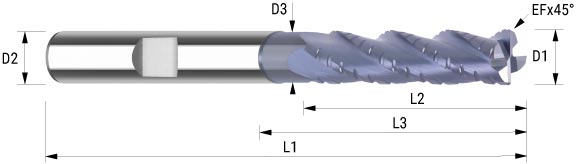 Produktbezeichnung (Variante) D1 D2 D3 L1 L2 L3 Z Eckfase NL Schaft L4 Materialeignung ART.-NR: