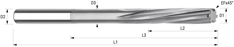 Produktbezeichnung (Variante) D1 D2 D3 L1 L2 L3 Z Eckfase Schaft L4 DS Materialeignung ART.-NR:
